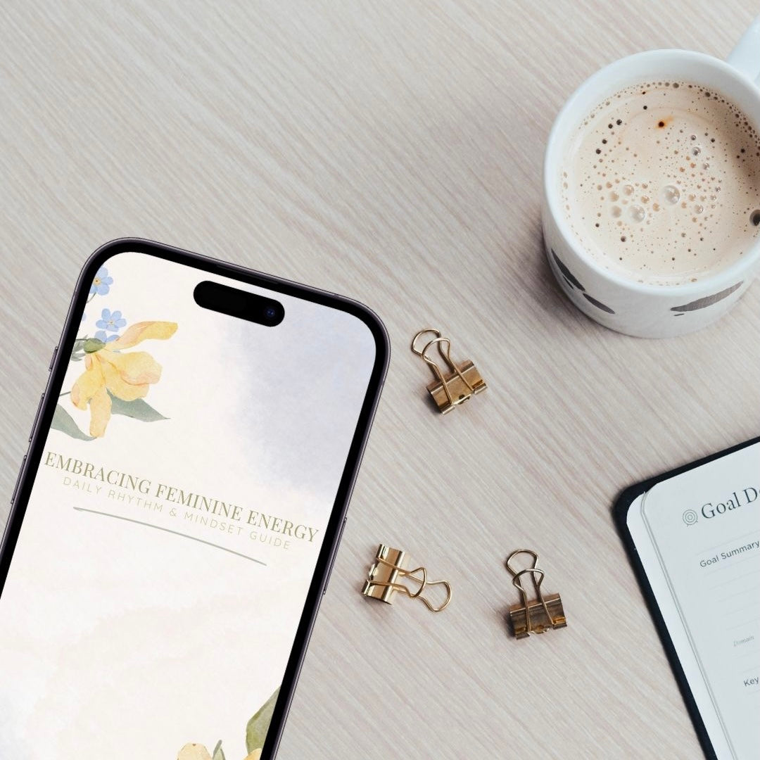 Embracing Feminine Energy Is a 24-page digital PDF guide designed to help you reconnect with your natural rhythm, feel more balanced in daily life, and glow with confidence from within. Filled with gentle practices and reflective prompts, this guide is your companion to creating a lifestyle of ease, grace, and radiance.